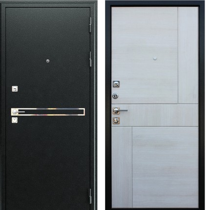 Дополнительно: Евроцилиндр К-В перфокарта. Броненакладка врезная. Штырь противосъемный (3 шт). Порог из нержавеющей стали (цвет «хром»).