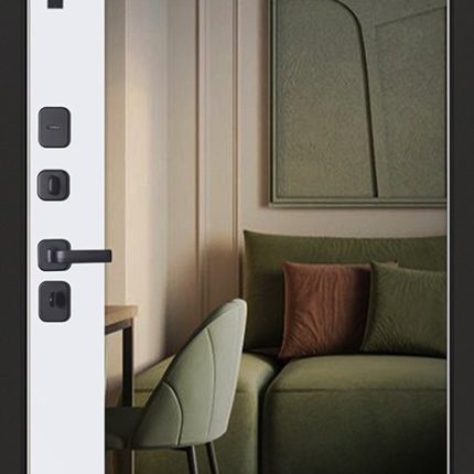 Входная дверь LOFT с Зеркалом Фацет — Белый софт
