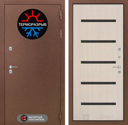 Входная дверь Термо Магнит 01 — Беленый дуб, стекло черное