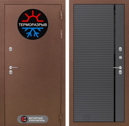 Входная дверь Термо Магнит 22 — Графит софт, черная вставка