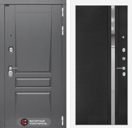 Входная дверь Платинум 31 — Черный кварц, зеркальная вставка с тонировкой