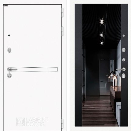 Входная дверь Лайн WHITE с Зеркалом тонированным Максимум — Черный кварц