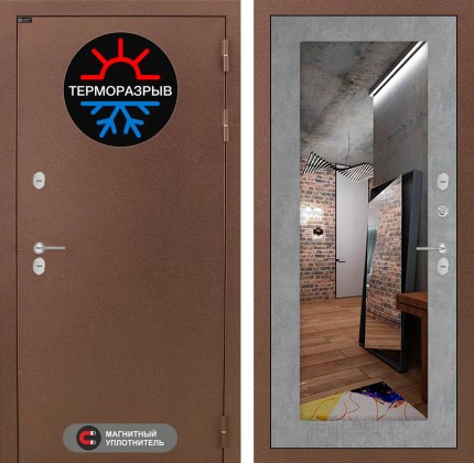 Входная дверь Термо Магнит с Зеркалом 18 — Бетон светлый