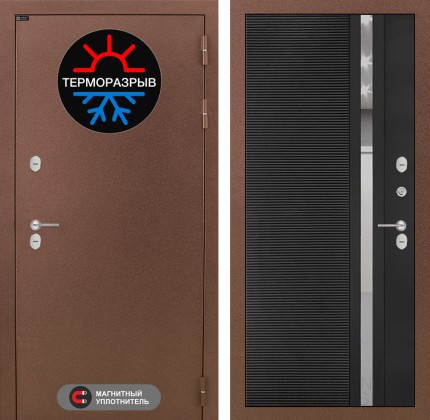 Входная дверь Термо Магнит 31 — Черный кварц, зеркальная вставка с тонировкой