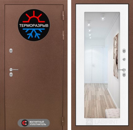 Входная дверь Термо Магнит с Зеркалом 19 — Белый софт