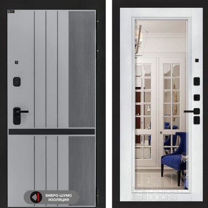 Входная дверь EVOLAB с Зеркалом Фацет — Белый софт