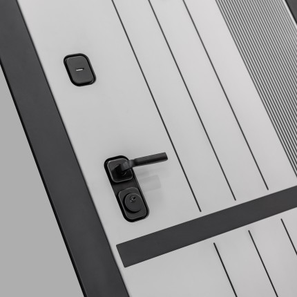 Входная дверь Атлантик 31 — Белый софт, зеркальная вставка с тонировкой