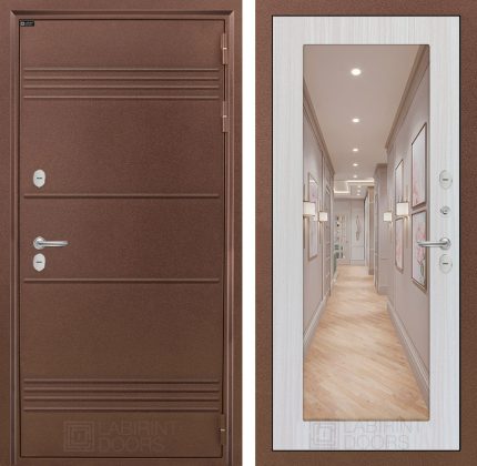Входная дверь Термо Лайт с Зеркалом 18 — Белое дерево