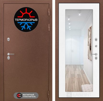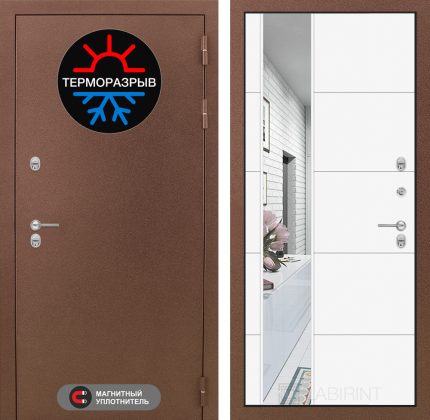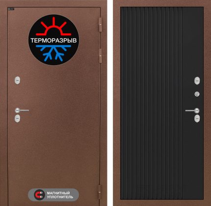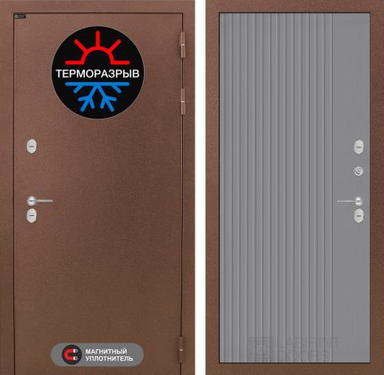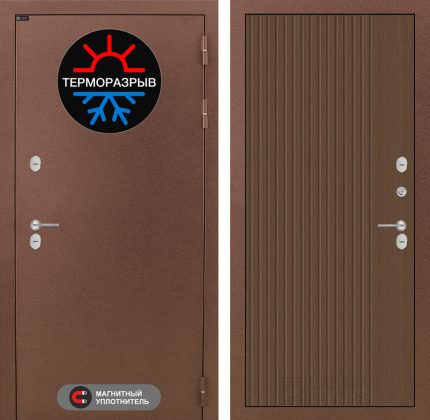 Терморазрыв=’Полиамидный профиль 7 мм по всему периметру полотна и короба двери’Конструкция=’Сталь 1,5 мм, закрытый утепленный короб, усиливающие 2 ребра жесткости