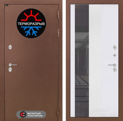 Входная дверь Термо Магнит с зеркалом Панорама — Белый софт
