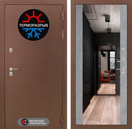 Входная дверь Термо Магнит с Зеркалом Максимум — Бетон светлый