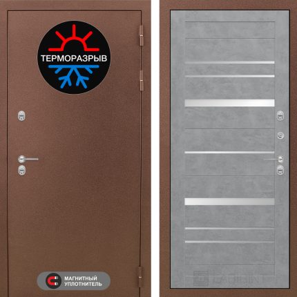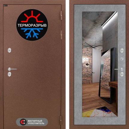 Входная дверь Термо Магнит с Зеркалом 18 — Бетон светлый