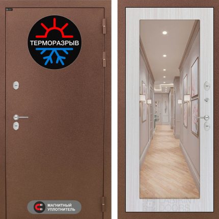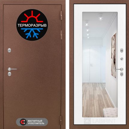 Входная дверь Термо Магнит с Зеркалом 18 — Белое дерево