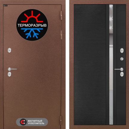 Входная дверь Термо Магнит 31 — Черный кварц, зеркальная вставка с тонировкой