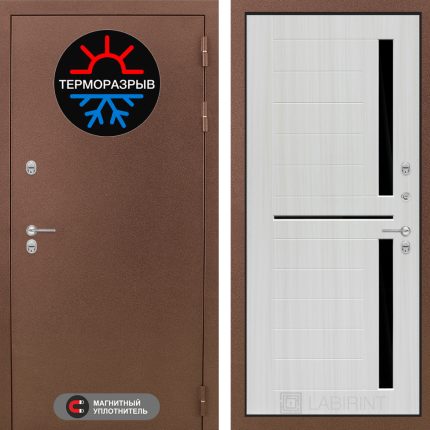 Входная дверь Термо Магнит 02 — Сандал белый, стекло черное