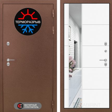 Входная дверь Термо Магнит с Зеркалом 19 — Белый софт