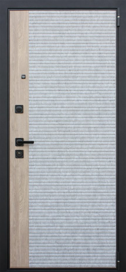Представляем новинку от «АСД» ― модель «Дуэт Б», сочетающую новые дизайнерские решения и наш многолетний опыт производства стальных дверей. Наружный лист (1,5 мм) отделан панелью МДФ в строгом цвете «бетон темный», внутреннее полотно отделано экошпоном в элегантном цвете «бетон светлый». Безопасность модели обеспечивают два замка «Гардиан» и стальная броненакладка. Благодаря качественному утеплению «Дуэт Б» не только защитит ваш дом от недоброжелательных гостей, но и сделает его более комфортным.