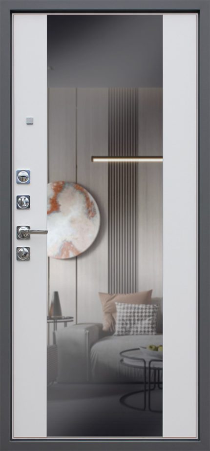 Компания «АСД» представляет» новый вариант популярной двери «Стелла с зеркалом» ― модель «Стелла с зеркалом» со встроенным во внутреннее полотно зеркалом Такое решение не только функционально и удобно в использовании, но и создает визуальный эффект увеличения площади помещения. Отличные характеристики безопасности. Модель входной двери «Стелла с зеркалом» станет отличным выбором для тех, кто ищет качество за невысокую стоимость. Сдержанный и привлекательный дизайн, невысокая стоимость делают эту модель весьма востребованной. Это современная модель стальной входной двери.