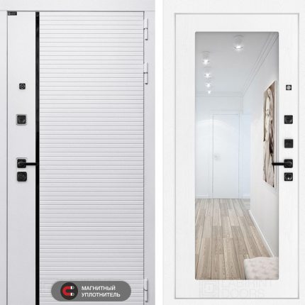 Входная дверь ROYAL с Зеркалом 18 — Белое дерево