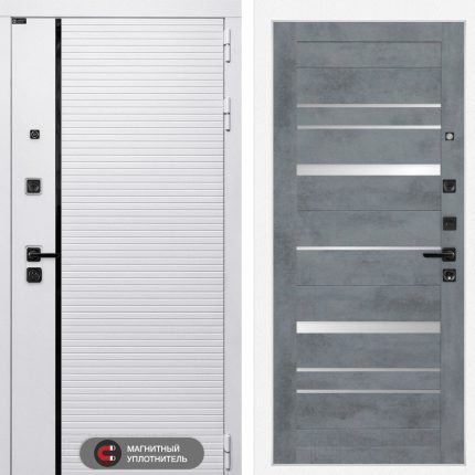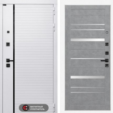Входная дверь ROYAL 20 — Бетон светлый, зеркальные вставки