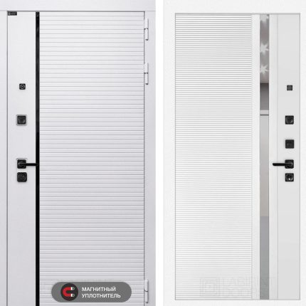 Входная дверь ROYAL 31 — Белый софт, зеркальная вставка с тонировкой