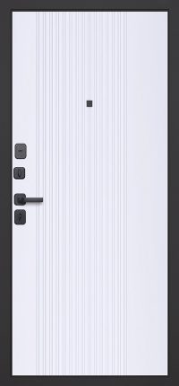 Представляем новинку от «АСД» ― модель «Ливерпуль», сочетающую новые дизайнерские решения и наш многолетний опыт производства стальных дверей. Наружный лист (1,5 мм) отделан панелью МДФ в строгом цвете «ясень графит» со вставкой черная лакобель, внутреннее полотно отделано экошпоном в элегантном цвете «белый матовый». Безопасность модели обеспечивают два замка «Гардиан» и стальная броненакладка. Благодаря качественному утеплению «Ливерпуль» не только защитит ваш дом от недоброжелательных гостей, но и сделает его более комфортным.
