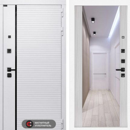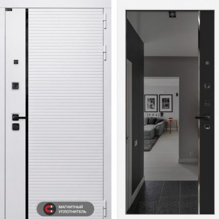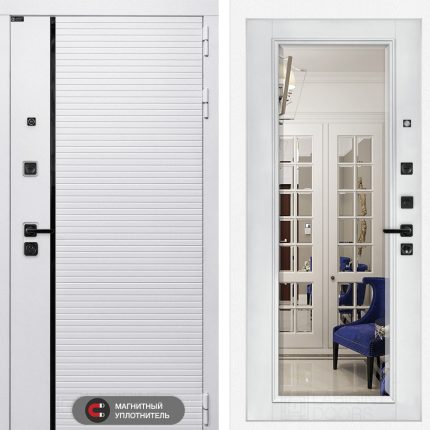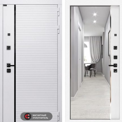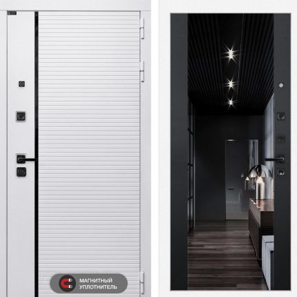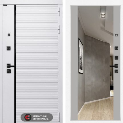 Входная дверь ROYAL с зеркалом Панорама — Белый софт