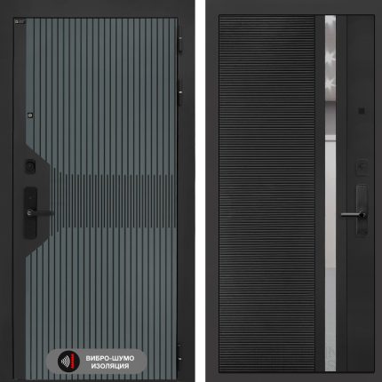 Входная дверь Смартлаб 31 — Черный кварц, зеркальная вставка с тонировкой