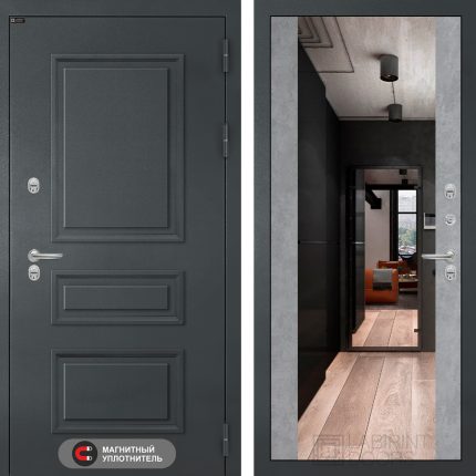 Входная дверь Атлантик с зеркалом Максимум — Бетон светлый