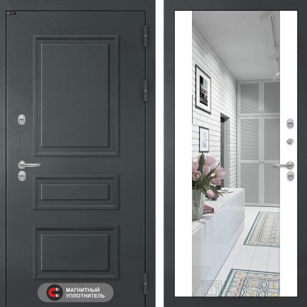 Входная дверь Атлантик с зеркалом Максимум — Белый софт