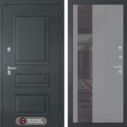 Входная дверь Атлантик с Зеркалом 32 тонированным — Серый рельеф софт