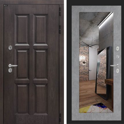 Входная дверь Лондон с зеркалом 18 — Бетон светлый