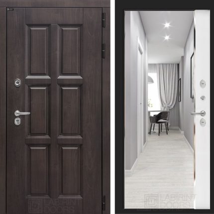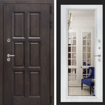 Входная дверь Лондон с зеркалом Фацет — Белый софт