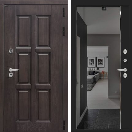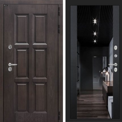 Входная дверь Лондон с тонированным зеркалом Максимум — Черный кварц