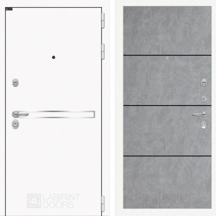 Входная дверь Лайн WHITE 25 — Бетон светлый, черный молдинг