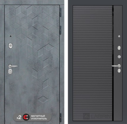 Входная дверь Бетон 22 — Графит софт, черная вставка