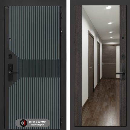 Входная дверь Смартлаб с Зеркалом Максимум — Грей софт