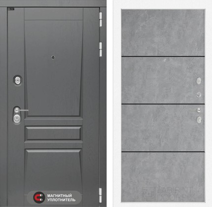 Входная дверь Платинум 25 — Бетон светлый, черный молдинг
