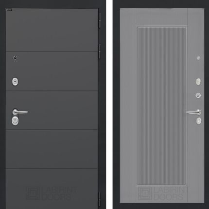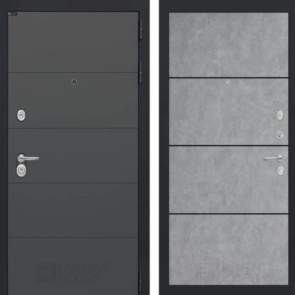 Входная дверь ART 25 — Бетон светлый, черный молдинг