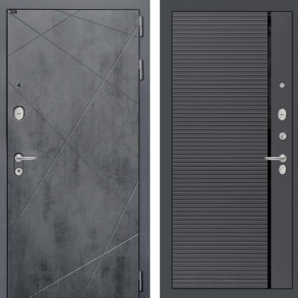 Входная дверь LOFT 25 — Бетон светлый, черный молдинг