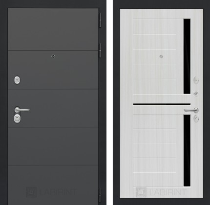 Входная дверь ART 02 — Сандал белый, стекло черное