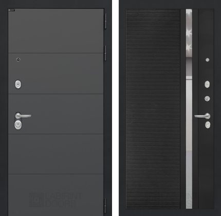 Входная дверь SILVER 22 — Графит софт, черная вставка