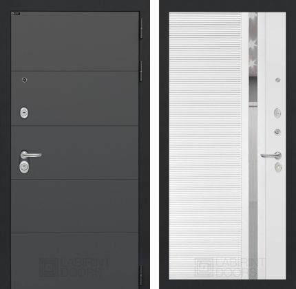 Входная дверь ART 31 — Белый софт, зеркальная вставка с тонировкой