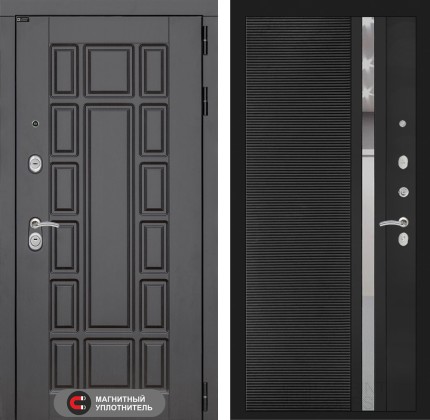 Входная дверь Нью-Йорк 31 — Черный кварц, зеркальная вставка с тонировкой