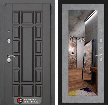 Входная дверь Нью-Йорк с Зеркалом Максимум — Бетон светлый