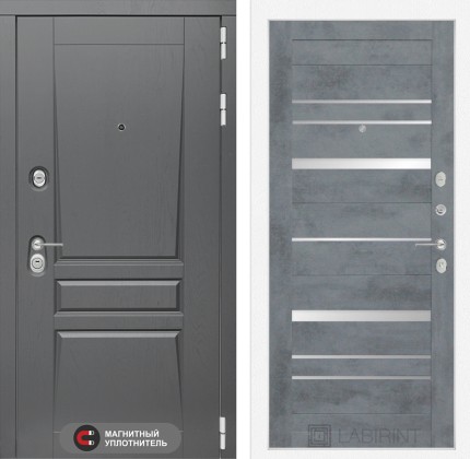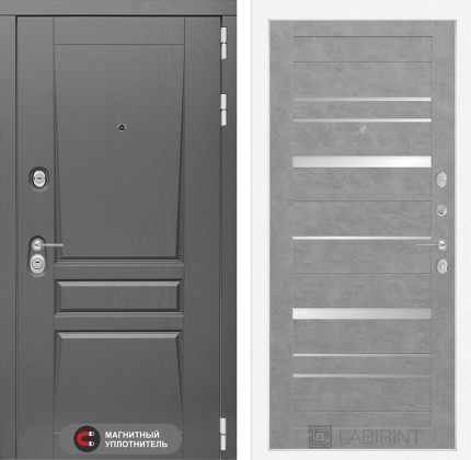 Входная дверь Платинум 20 — Бетон светлый, зеркальные вставки
