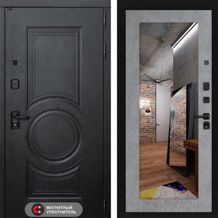 Входная дверь GRAND 20 — Бетон темный, зеркальные вставки