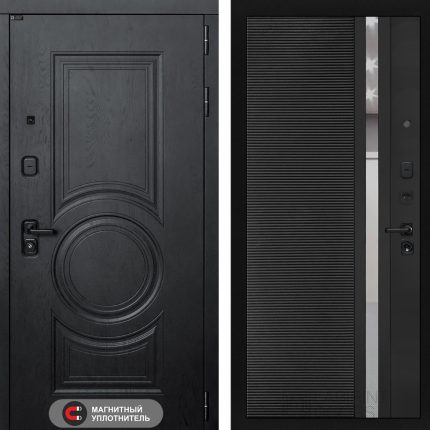 Входная дверь GRAND 31 — Черный кварц, зеркальная вставка с тонировкой