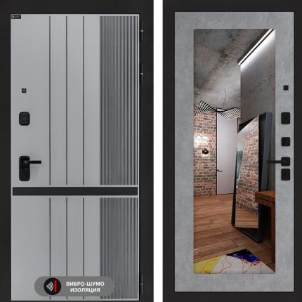 Входная дверь SKYLAB с Зеркалом 18 — Бетон светлый