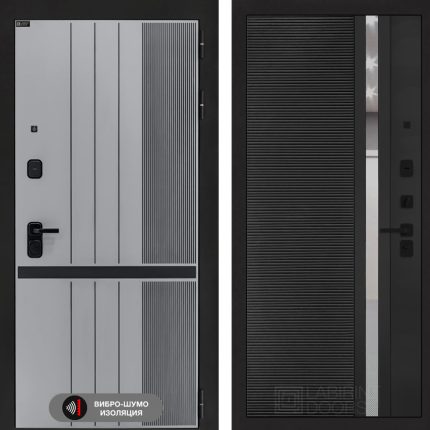 Входная дверь SKYLAB 31 — Черный кварц, зеркальная вставка с тонировкой
